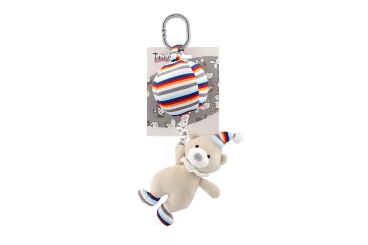 Medvěd s balónem plyšový 30 cm na postýlku / kočárek natahovací hrací strojek