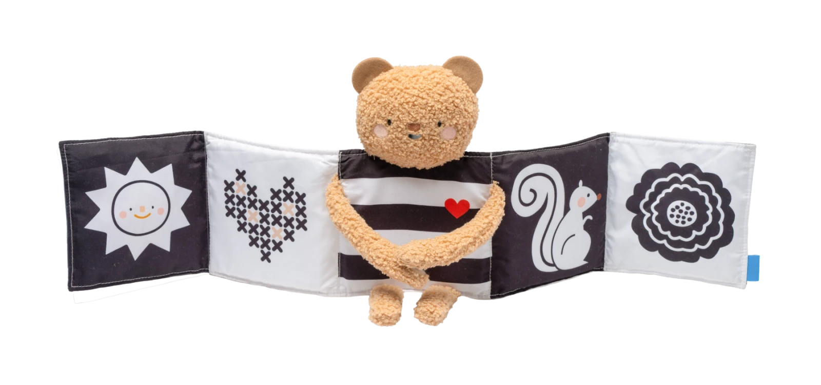 - Různé textury, šustění a štítky podporují rozvoj hmatu i sluchu