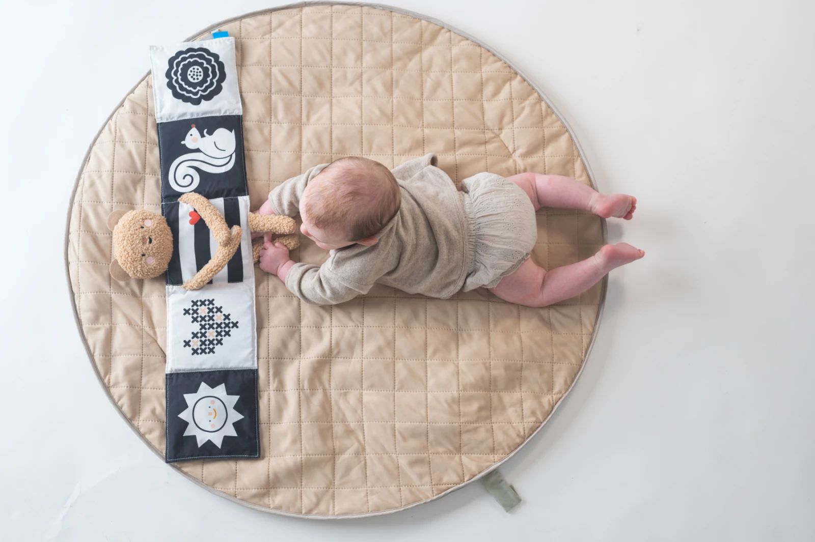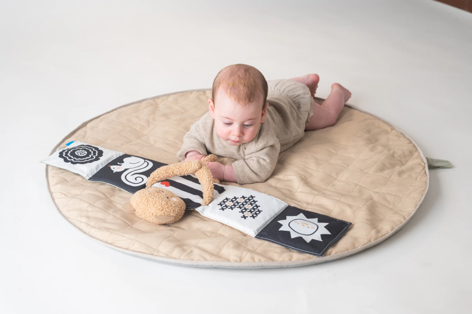- Oboustranné provedení pro různé fáze vývoje – černobílé pro novorozence, barevné pro starší miminka