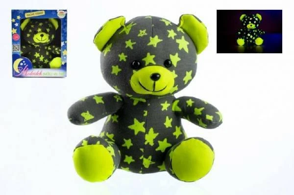 Medvídek svítící ve tmě 21 cm šedý žlutý plyš