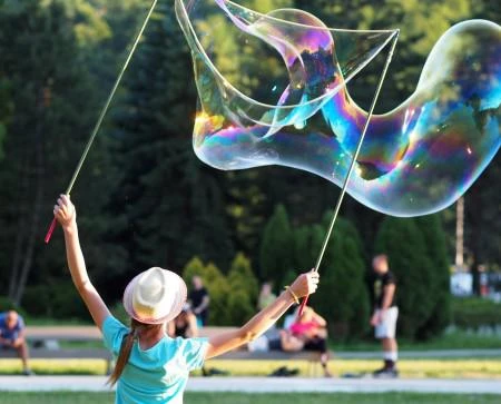 Vytvoř si opravdu obrovské bubliny s pomocí bublifukové tyčky s provázkem.