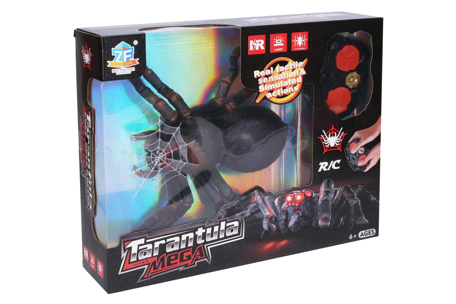 Tarantule má rozměry 26,5 × 24 × 8 cm a díky provozu až 60 minut poskytne spoustu zábavy. Přepínač ON/OFF je umístěn na spodní straně hračky.