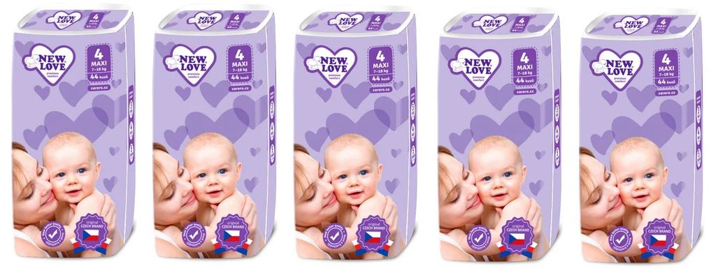 MEGAPACK Dětské jednorázové pleny New Love Premium comfort 4 MAXI 7-18 kg 5x44 ks