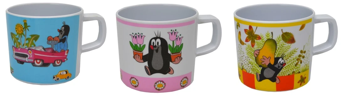 - Hrníčky a sportovní láhve melamin, klasický hrníček bez pítka, pro děti