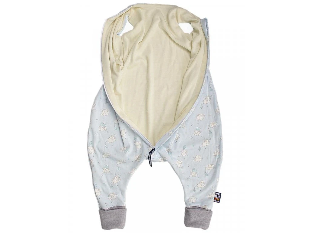 - Bavlněný dětský spací pytel s podšívkou a s náplety z merino vlny.
