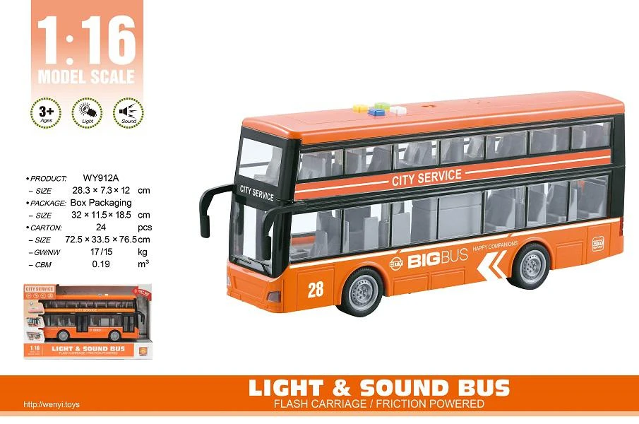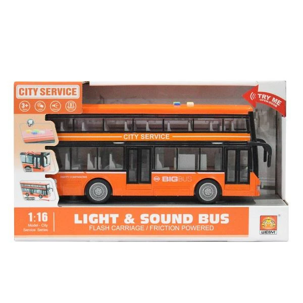 Městský dvoupatrový autobus 27 cm na setrvačník se zvukem a světlem
