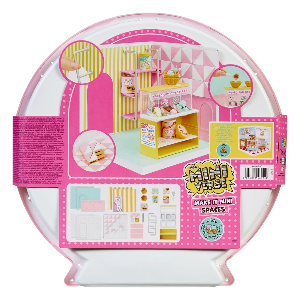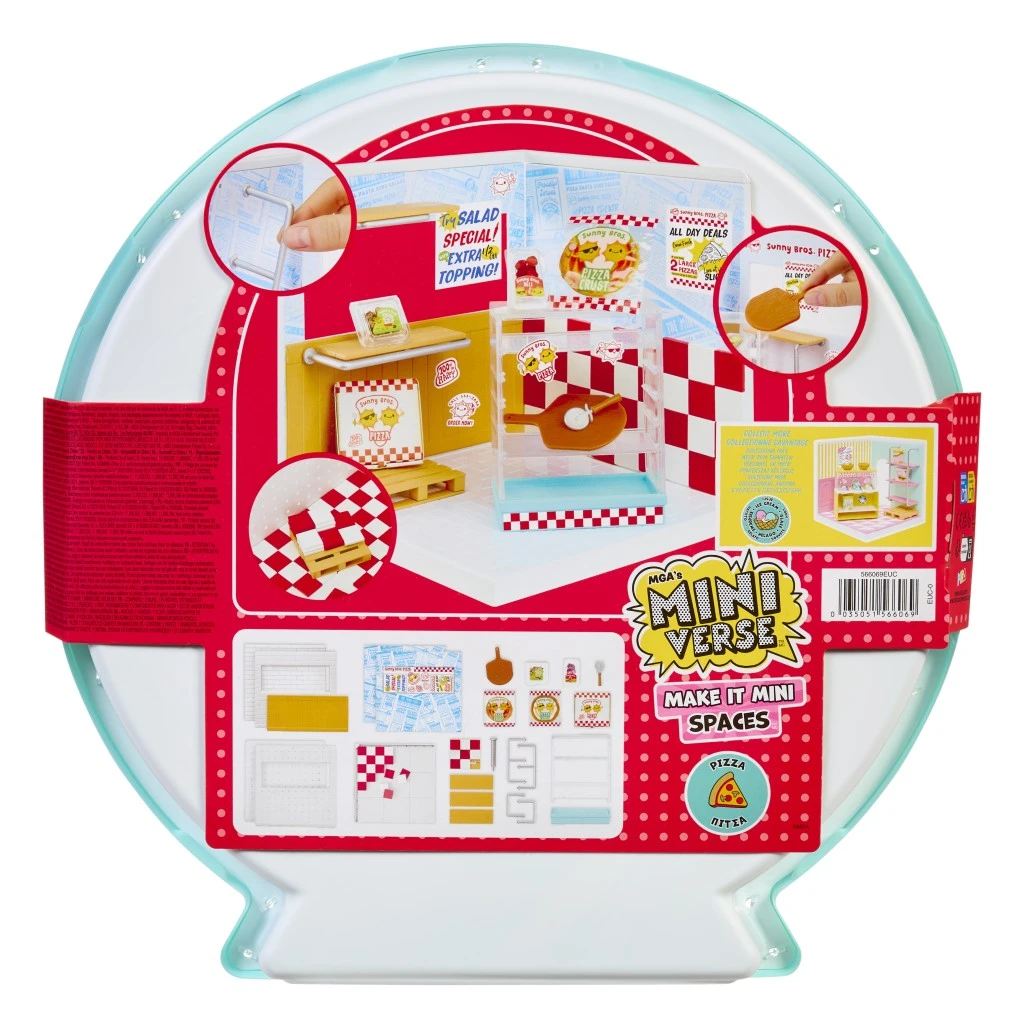 Tento set slouží nejen jako místo pro vystavení sběratelských miniatur, ale také jako prostor pro kreativní tvorbu tematických místností. Balení obsahuje podlahu, stěny, panely, obklady i tapety, které lze libovolně kombinovat a sestavovat. Stačí položit dlaždice, připevnit stěny, umístit panely a doplnit vše poličkami nebo dekoracemi. Varianta Pizza shop umožňuje vytvořit malou pizzerii, zatímco zmrzlinový stánek nabízí vše potřebné pro zmrzlinárnu.