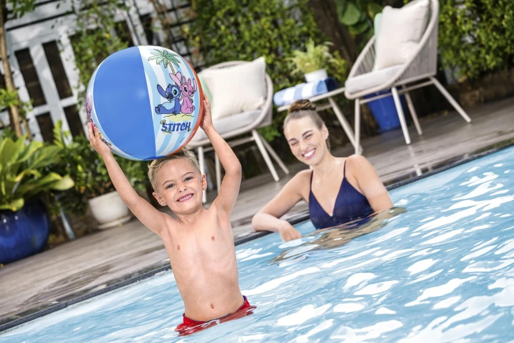 Letní zábava se Stitchem na každém kroku! Nafukovací plážový míč s oblíbeným motivem Stitche je ideální společník pro letní hry u vody i na zahradě. Díky veselému barevnému designu a hravému motivu si ho děti okamžitě zamilují.
