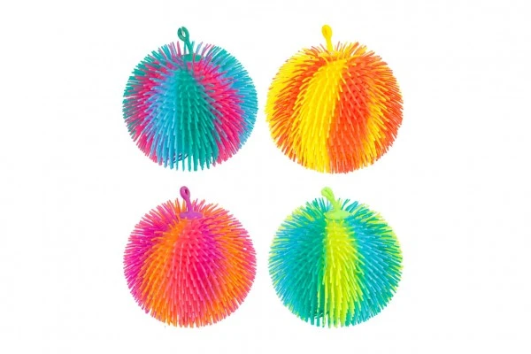 Míček antistresový mačkací chlupatý duhový 15 cm