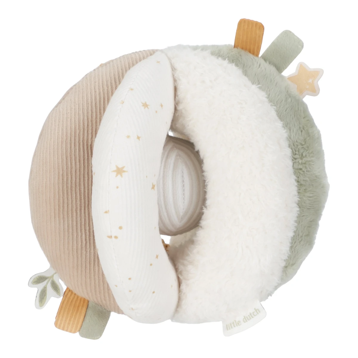 Míček je součástí designové kolekce hraček a doplňků Little Dutch Newborn Naturals.