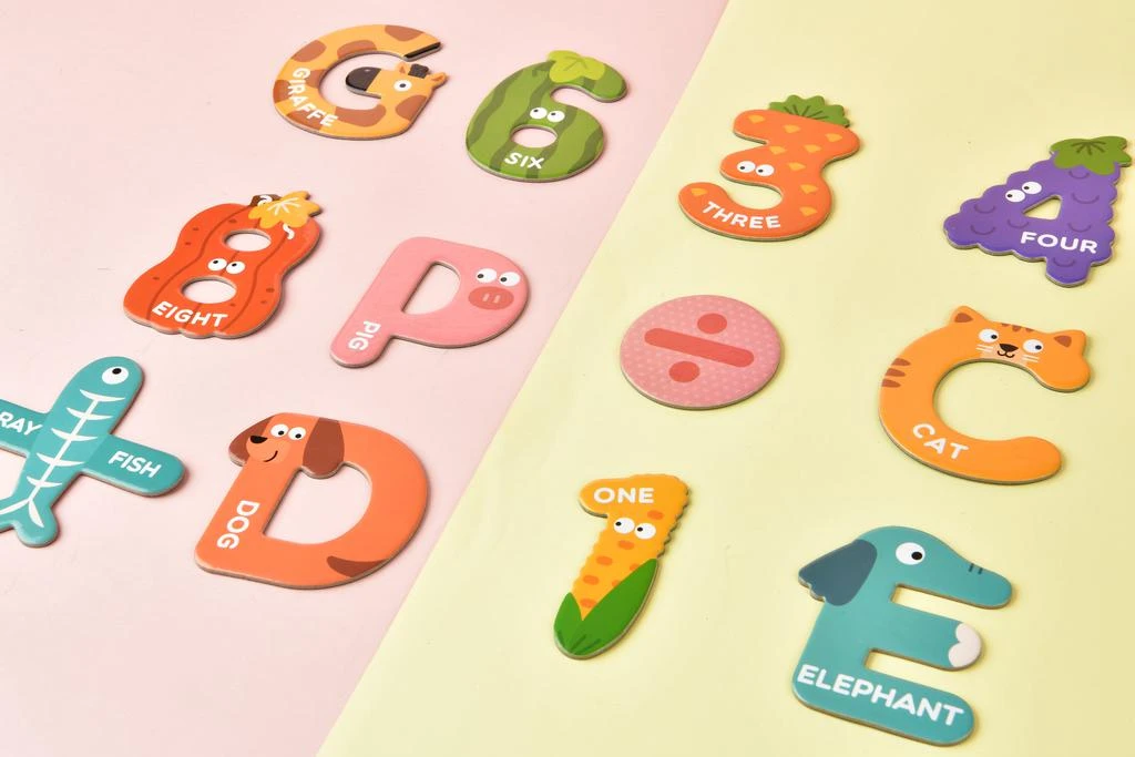 čísla a znaménka jsou vyrobena z odolného kartonu a ze zadní strany mají magnetický povrch