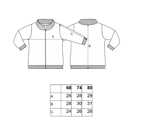 Rukávy mikiny jsou ukončeny širokými náplety, které můžete ohrnout a přizpůsobit délku rukávů aktuální velikosti dítěte. Tímto způsobem se mikina přizpůsobí více velikostem a dítě ji může nosit o to déle.