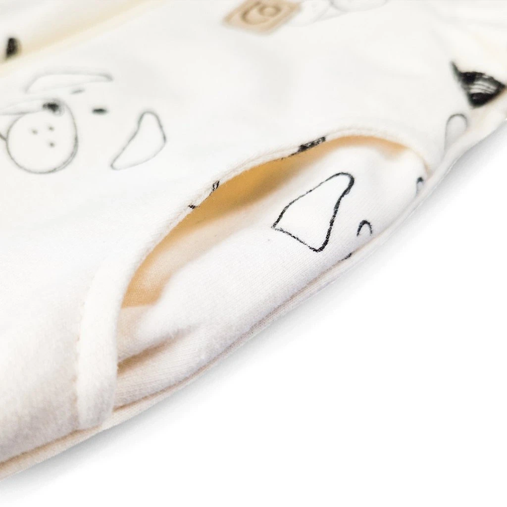 Rukávy mikiny jsou ukončeny širokými náplety, které můžete ohrnout a přizpůsobit délku rukávů aktuální velikosti dítěte. Tímto způsobem se mikina přizpůsobí více velikostem a dítě ji může nosit o to déle. Náplet ukončuje mikinu a díky tomu poskytuje komfortní nošení, podpoří nevykasávání.