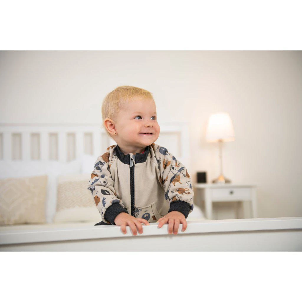 Pohodlná a stylová dětská mikina s kapsami je správnou volbou pro volný čas i na vycházky do města. Mikina má vepředu praktické zapínání na zip a u krku je zakončena slušivým stojáčkem. Po zapnutí můžete jezdec zipu schovat do speciální krytky a zabránit tak otlačení brady. Rukávy mikiny jsou ukončeny módními širokými náplety, které můžete ohrnout a přizpůsobit délku rukávů aktuální velikosti dítěte. Tímto způsobem se mikina přizpůsobí více velikostem a dítě ji může nosit o to déle.