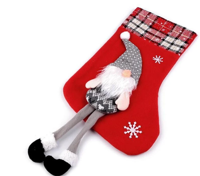 Mikulášská / vánoční punčocha 26x36 cm Skřítek Šedý