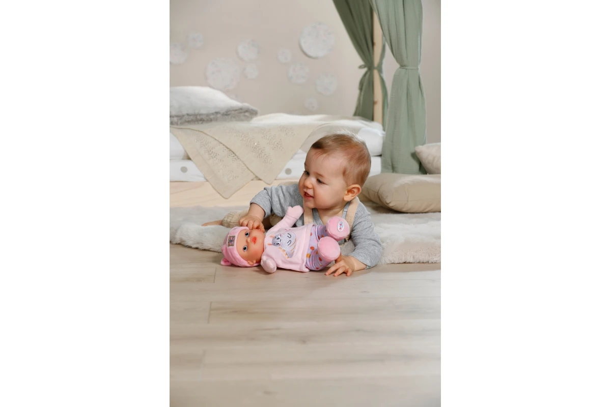 Baby born Sweetie v růžové barvě je lehká, bezpečná a krásně padne do malých ručiček. Má měkké tělíčko, šustivé ouško a jemný zvukový prvek uvnitř – ideální pro první smyslové podněty a hraní od narození.