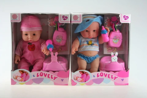 Miminko Lovely o velikosti cca 26cm. Baleni obsahuje: panenku, nočník, láhev, pěnu do koupele a chrastítko. Věk 3+