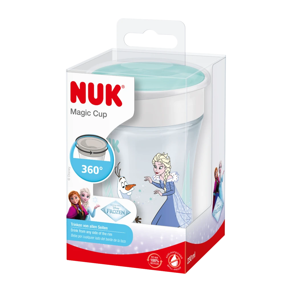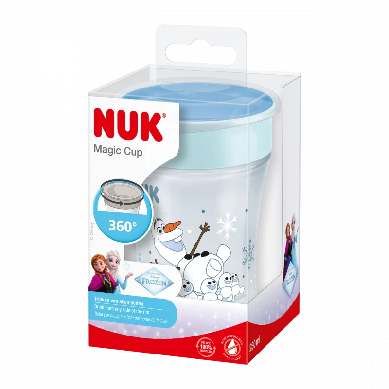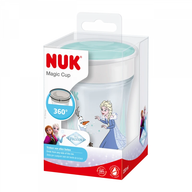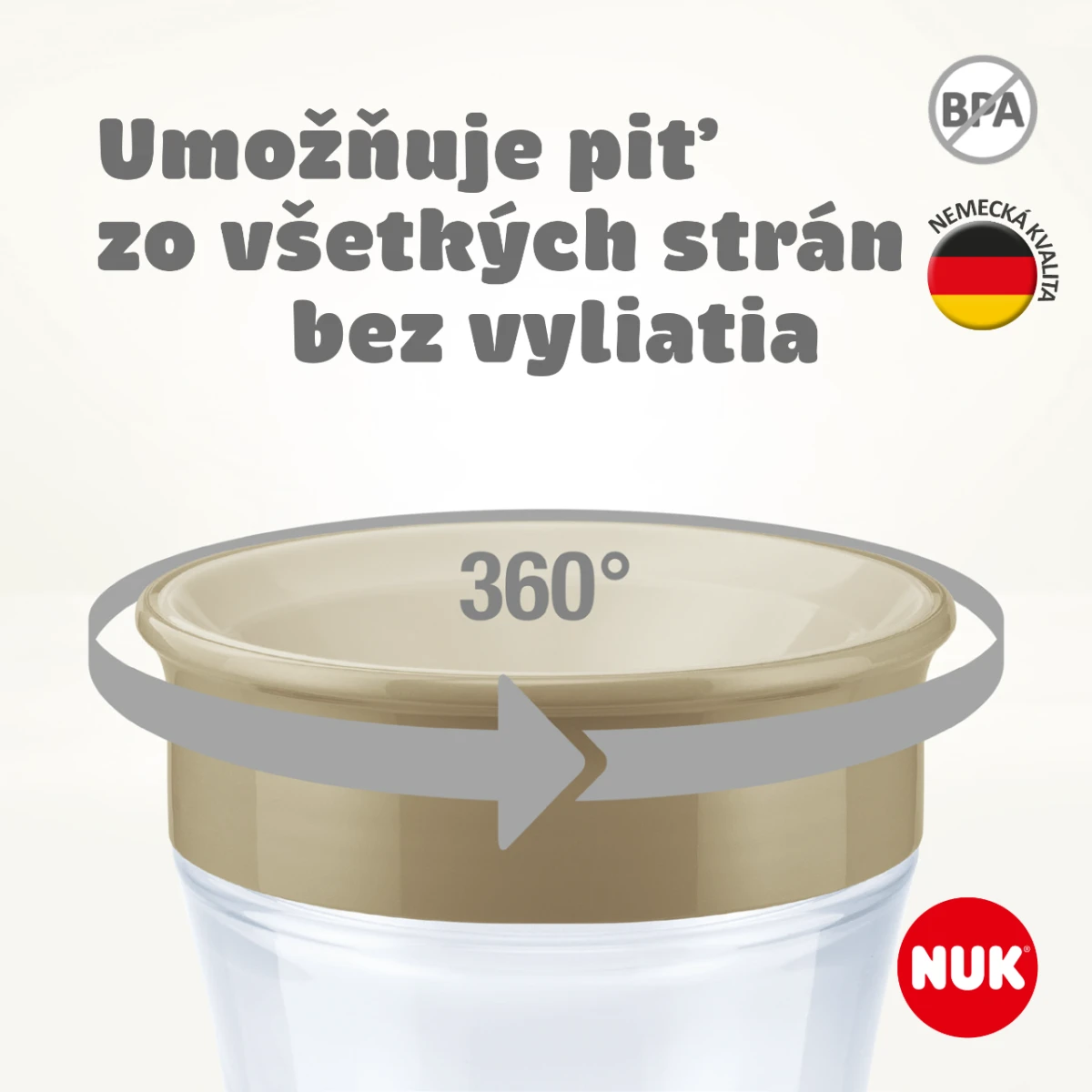 Hrneček NUK Magic Cup umožňuje malým dětem pít jako velké děti. 360° pitný okraj podporuje a pomáhá pít ze všech stran – žádná držátka a pití téměř jako z normálního hrnečku. Jediný „kouzelný rozdíl“ je ten, že tekutina z hrnečku nevyteče díky silikonovému disku, který utěsňuje víčko zevnitř. Pití je dětská hra – stačí jednoduše sát okraj hrnečku.