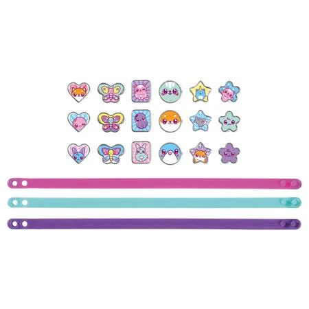 Balení obsahuje: tři plastové náramky barvy růžové, modré,fialové a 18 různých druhů doplňků s motivem MINI MYMY.