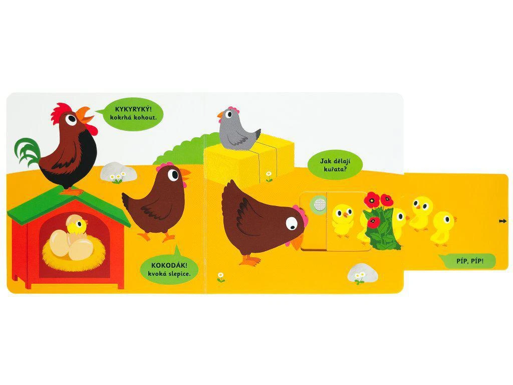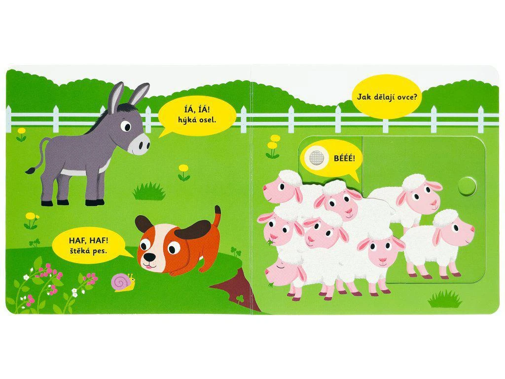 Objevovat svět zvuků s tímto leporelem je tak zábavné! Jak dělá kočka? Kdo kvoká na dvorku? A kdo chrochtá v blátě? Stačí jen vložit prstík do správného otvoru, lehce vysunout, zatáhnout, otočit ve směru šipky, stisknout tlačítko a hned bude váš malý objevitel či objevitelka znát odpovědi. Leporelo je určeno pro nejmenší děti a má pevné stránky s posuvnými a otočnými prvky, a tak si naši nejmenší mohou při prohlížení, rozeznávání věcí a poslouchání zvuků zvířat z farmy procvičit i jemnou motoriku.