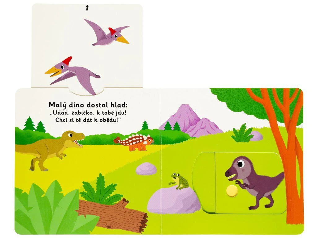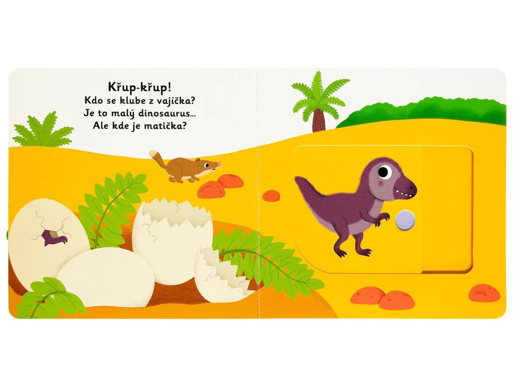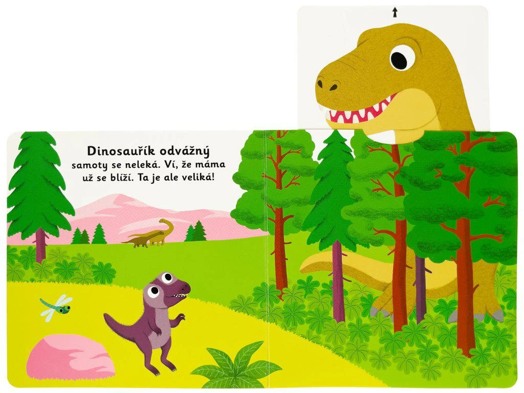 Dinosauřík odvážný samoty se neleká. Ví, že máma už se blíží. Ta je ale veliká! Poznejte příběh o malém dinosaurovi v tomto veršovaném leporelu s milými ilustracemi a pohyblivými prvky. Objevovat svět s tímto leporelem pro nejmenší děti od jednoho roku je tak zábavné! Pevné stránky s pohyblivými prvky procvičí i jemnou motoriku. Stačí jen vložit prstík do správného otvoru a lehce vysunout, zatáhnout nebo otočit a hned bude váš malý objevitel znát odpověď na to, jak probíhá den malého dinosaura.