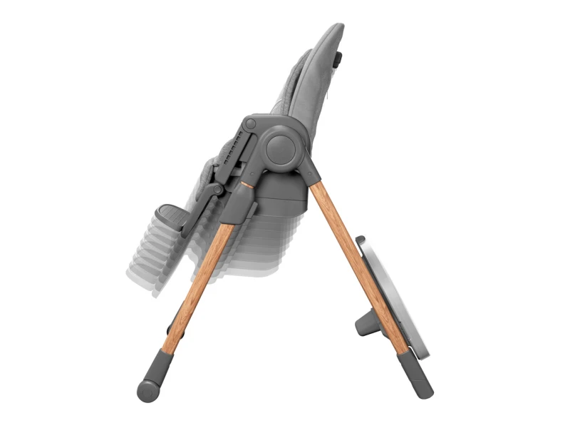 Židlička nabízí 9 nastavení výšky a je tak vhodná téměř ke každému stolu. Zadní opěrku můžete nastavit do 5 různých poloh od ležení po sezení. Variabilitu nastavení doplňují 4 varianty polohování nohou a 2 pozice podpěrky na nohy. Jídelní pult nabízí 4 různé možnosti použití a je možné jej zavěsit na zadní nohy židličky. Odnímatelný tác na jídelním pultu usnadňuje jeho údržbu po stolování.