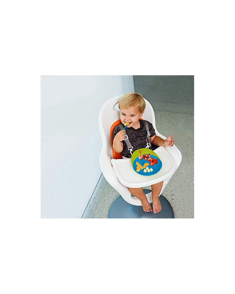 Flexibilní záchytná plocha je účinnější než bryndák a odvádí jídlo zpět do mísy, místo aby padalo dítěti do klína nebo na podlahu
