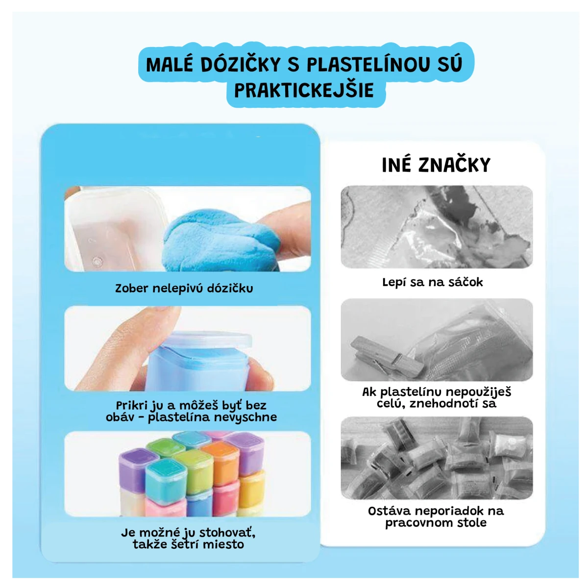 - Mini kapsle plastelíny – ideální pro dávkování a čistou kreativitu