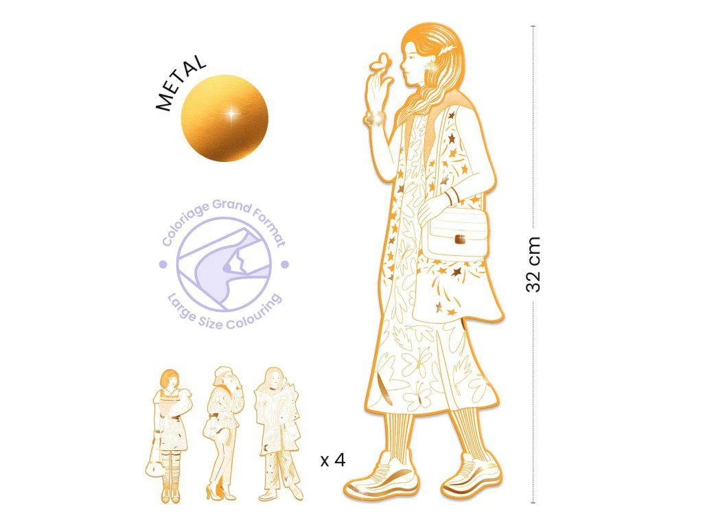 Obsah: 4 obrysy modelek k vybarvení, zdobené metalickými plochami.