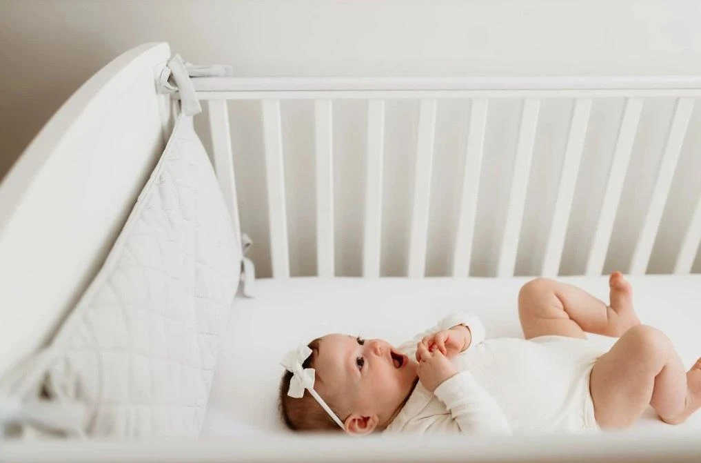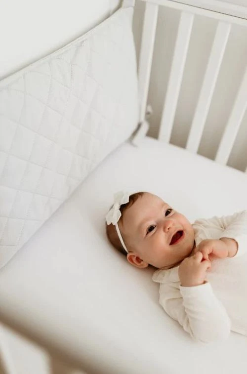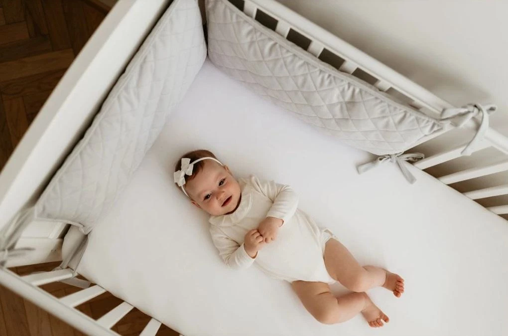 Mantinel umístěte na ty strany postýlky, kde hrozí riziko zranění hlavičky miminka.