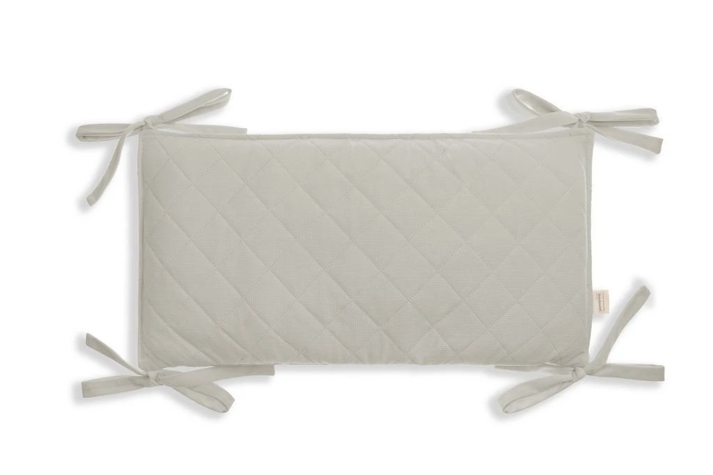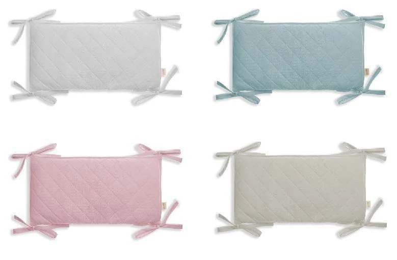 Díky tkaničkám umístěným ve všech rozích mantinelu můžete mantinel bezpečně zavázat k příčkám postýlky a být si jistí, že bude držet na svém místě a nebude padat či sklouzávat.