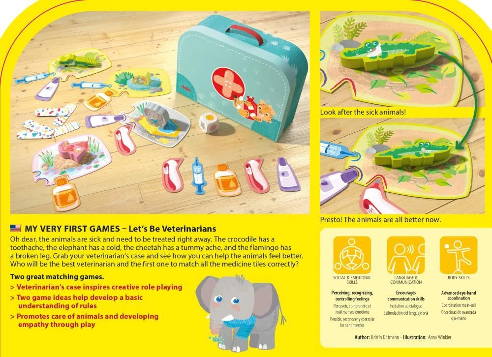 Hrajte a učte se: „Moje první hry: Veterinář“ není jen o zábavě; je to také zkušenost s učením. Hra povzbuzuje malé děti, aby se naučily starat o zvířata a hravou a přístupnou formou jim představí základní zdravotní péči. Součástí je také lékařská taška na podporu kreativního hraní rolí, která zvyšuje představivost a empatii.