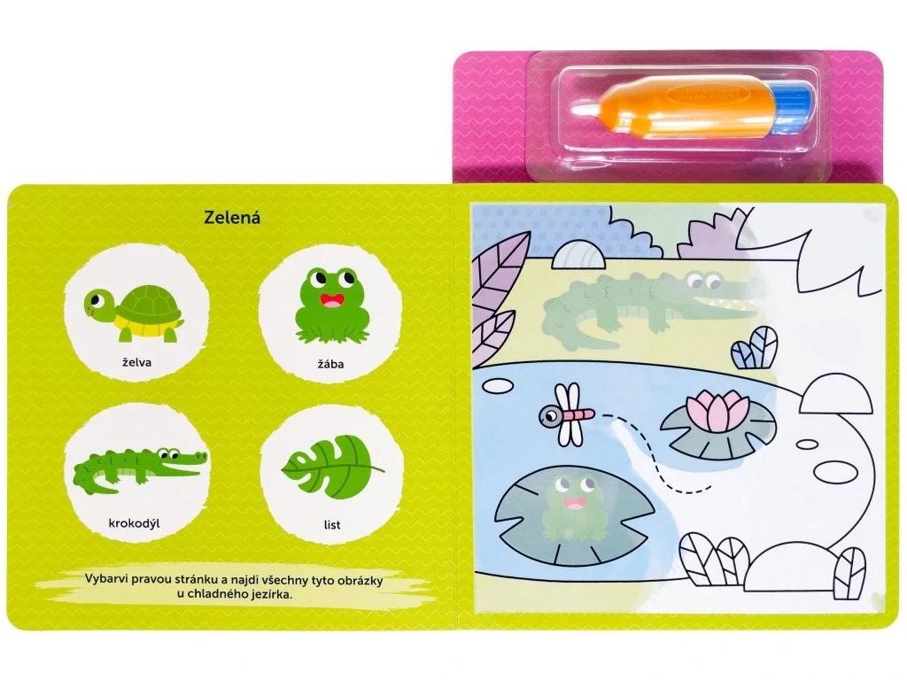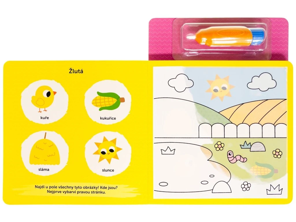 Naplňte speciální štětec vodou a přetřete obrázky! Jako kouzlem se barvy objeví! Ale to není vše! Na levé stránce jsou obrázky, které budete hledat ve vybarvených scenériích! A co se stane, až obrázky uschnou a barvy zmizí? Můžete se do vybarvování a hledání pustit znovu! Zábava nikdy nekončí!
