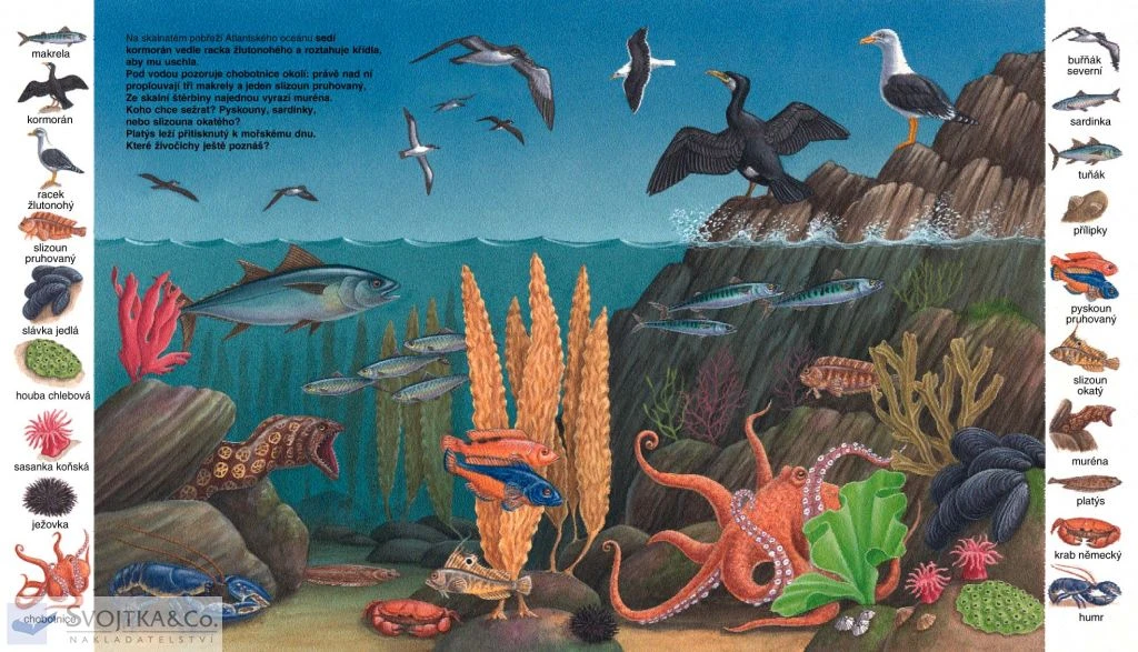 Toto leporelo je určeno pro děti, které zajímá život v moři a na plážích. Seznamuje malé čtenáře s rostlinami, rybami a ostatními zvířátky, které mohou vidět v moři a jeho okolí. Nechybějí zde jednoduché otázky, na které děti najdou srozumitelné odpovědi. Knížka je doplněna půvabnými názornými barevnými ilustracemi a rastrem s podrobnými vyobrazeními.
