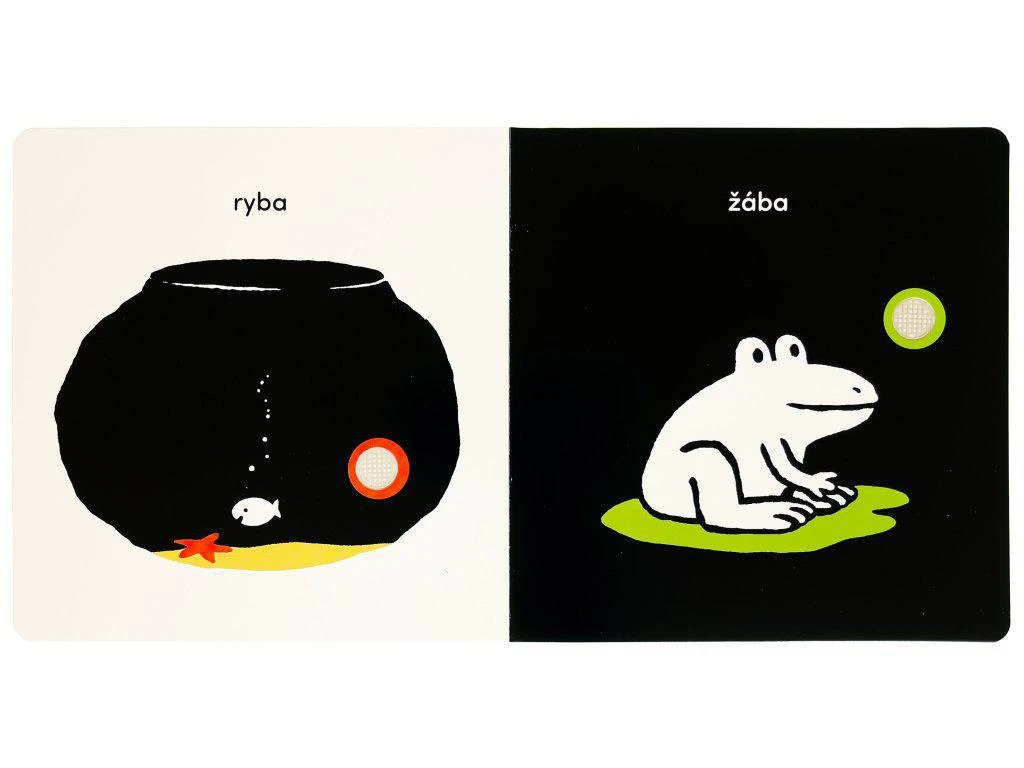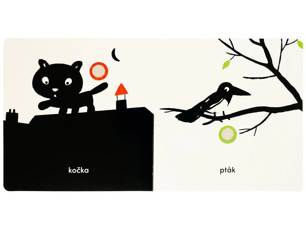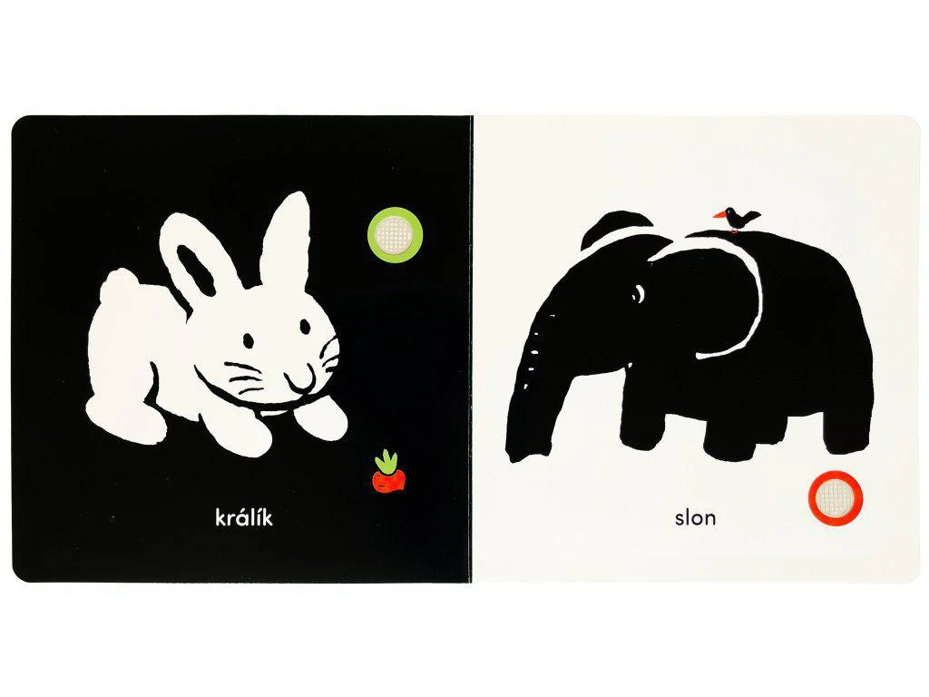 Tato kontrastní zvuková knížka je ideální první knihou pro nejmenší děti. Obsahuje 10 zvukových tlačítek se zvířátky, jako jsou kočka, slon, pes nebo kráva. Stisknutím tlačítka si děti poslechnou autentické zvuky a budou se učit spojovat obrázek s hlasem zvířete. Jednoduché černobílé ilustrace podporují vývoj zraku a zvuková interakce pomáhá rozvoji sluchu i jemné motoriky. Díky pevným stránkám je knížka vhodná i pro malé dětské ručičky. Skvělý společník do postýlky, kočárku i na cesty!