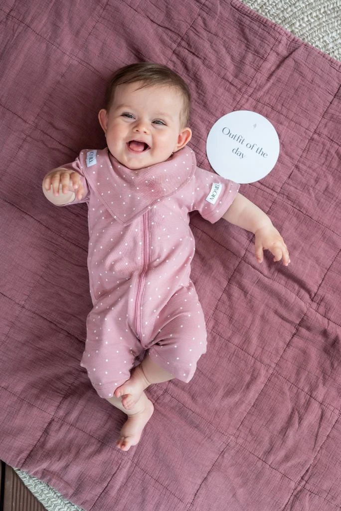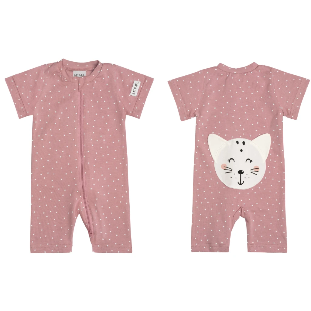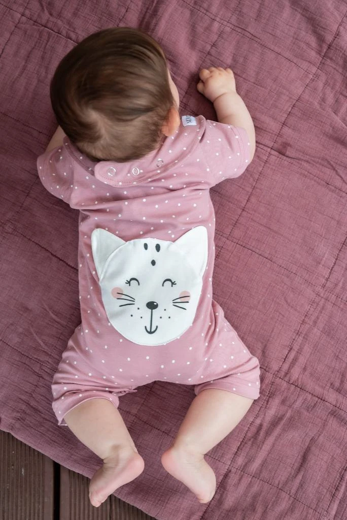 Dětský overal s krátkým rukávem Kočka Dots růžová vel. 62/68 Moniel