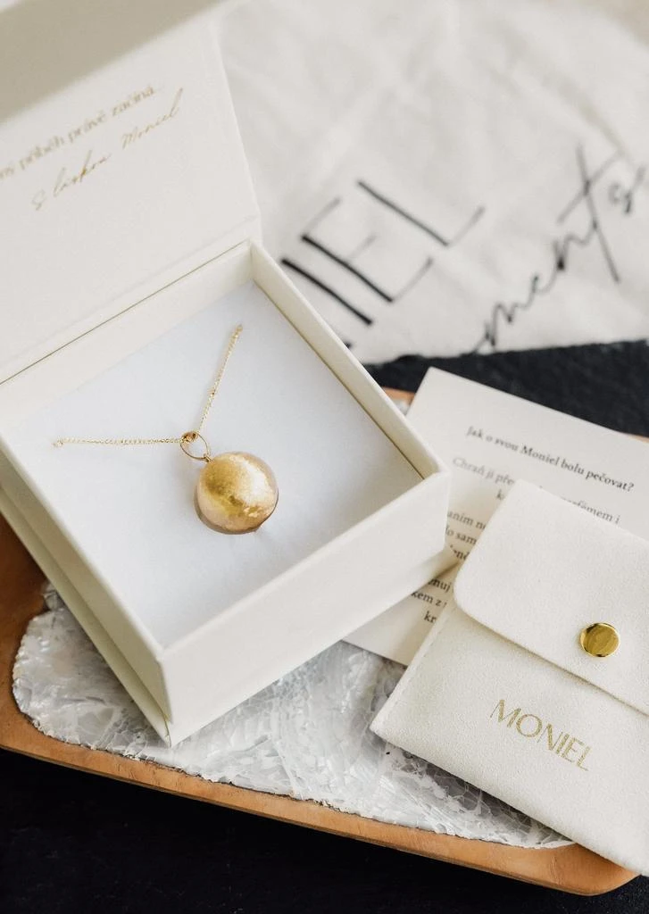 Součástí sady je bola, řetízek, dárková krabička, luxusní koženkové pouzdro na bolu a kartička s osobním vzkazem.