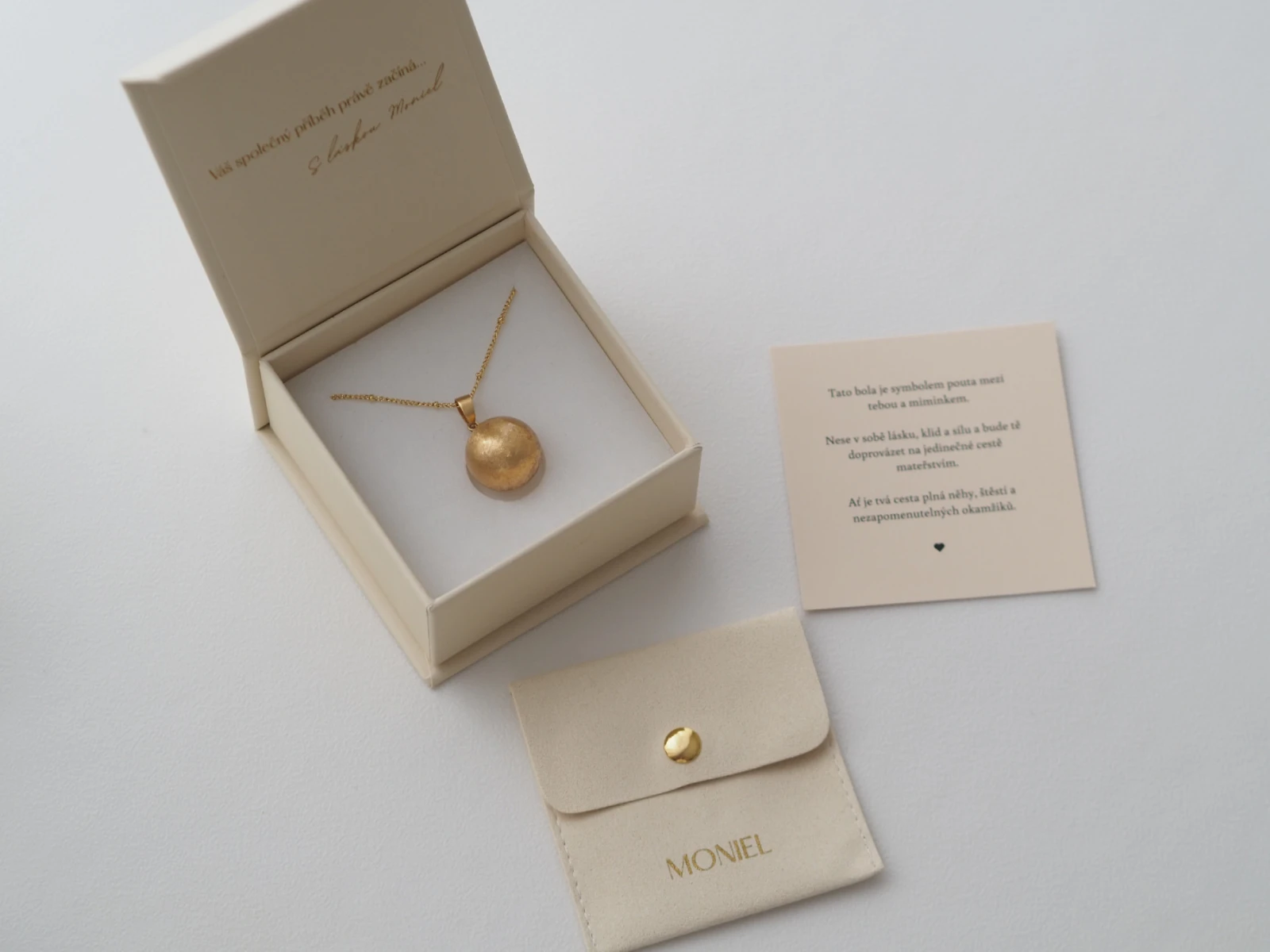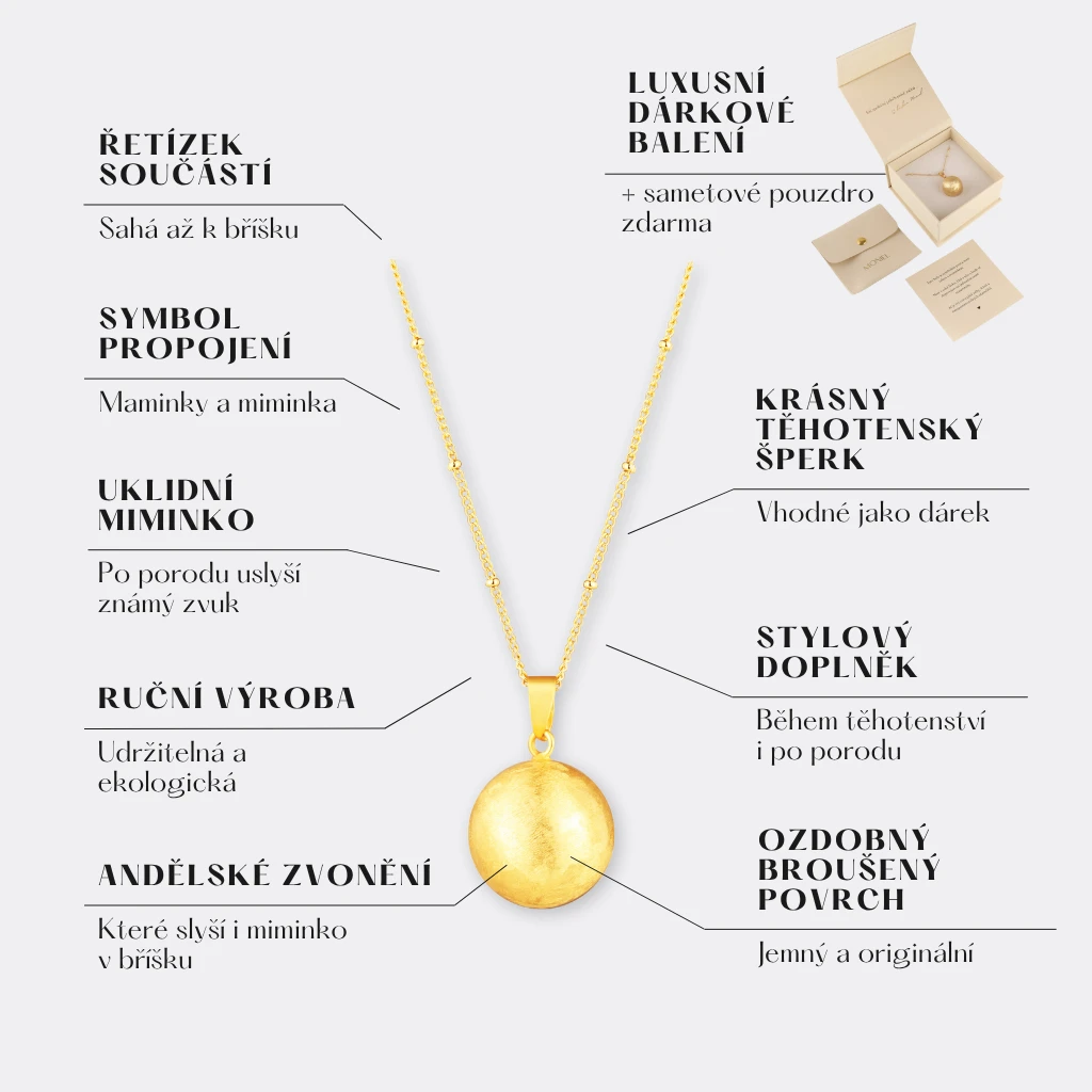 Těhotenský šperk bola Soul zlatá s broušeným povrchem + řetízek Moniel