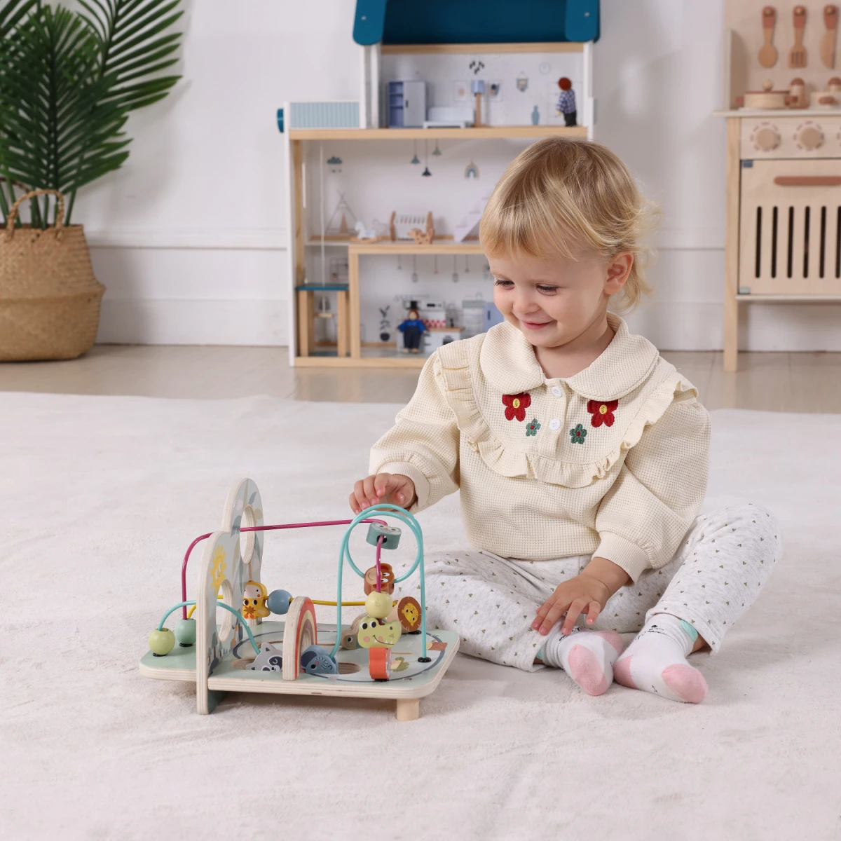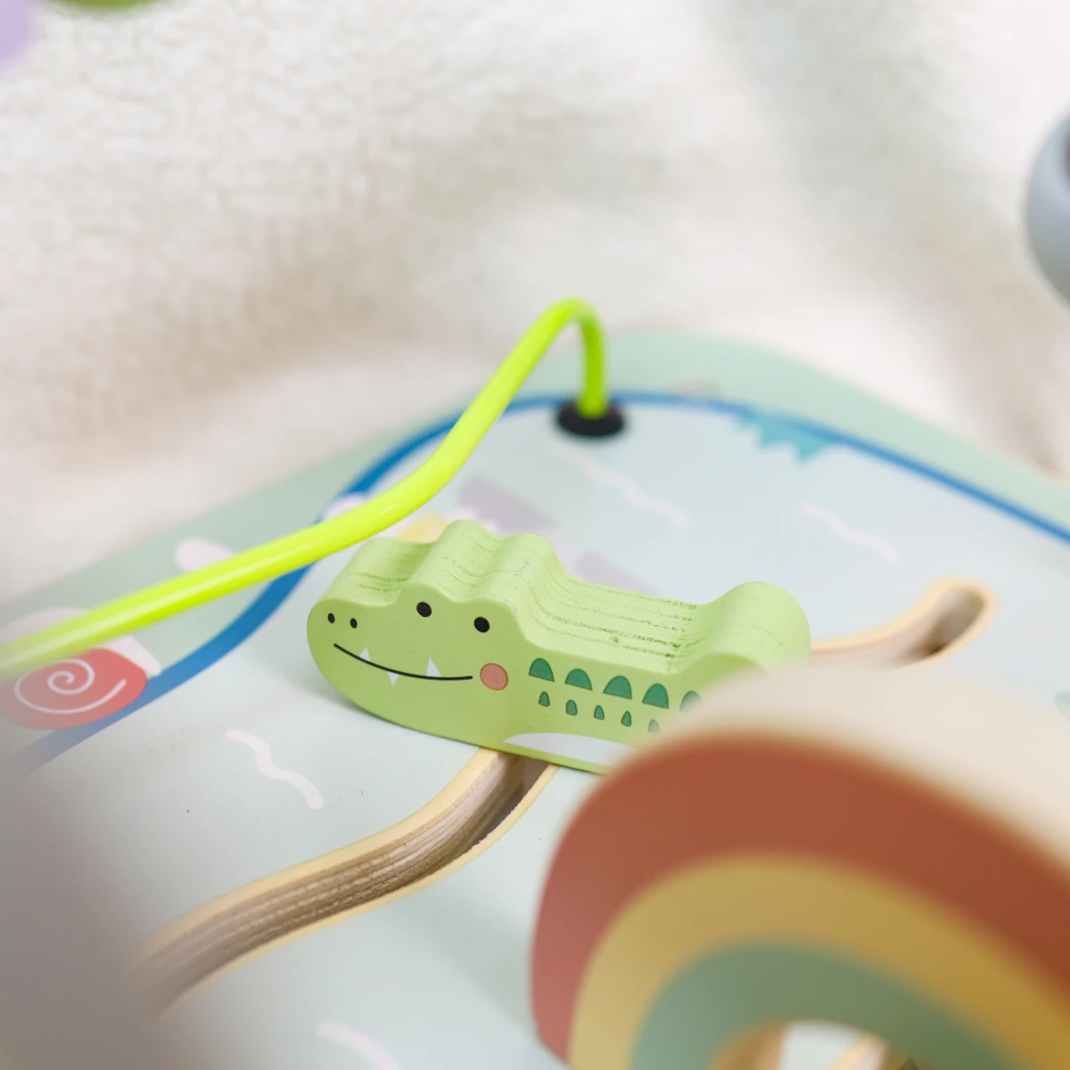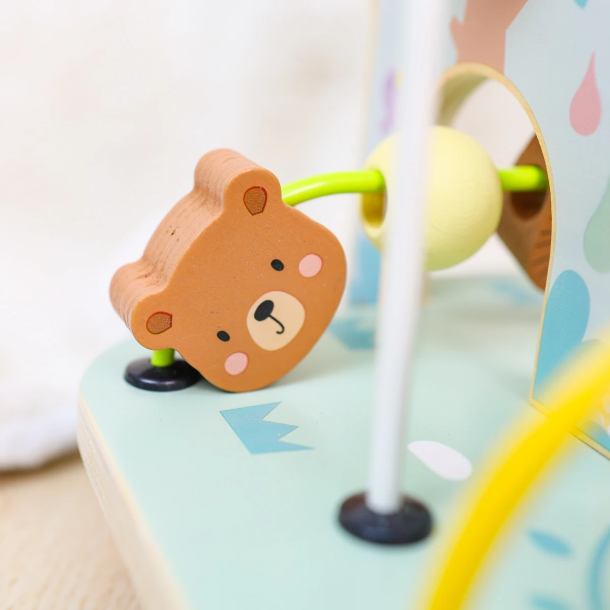 Dřevěné motorové bludiště s lesními a savanovými motivy od Tooky Toy v nadčasových pastelových barvách nabízí spoustu zábavy dětem od 2 let. Děti kloužou roztomilými lesními a lučními zvířaty ve tvaru dřevěných korálků mezi stromy a vodou. Starší děti také používají tuto dřevěnou hračku jako pozadí pro své hry. Bludiště je kompaktní a má 4 malé nohy, takže ho můžete snadno postavit na jakýkoli rovný povrch.