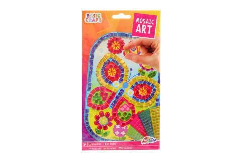 Nalepovací mozaika s motivem motýlka. Obsahuje cca 300 barevných nalepovacích čtverečků.
