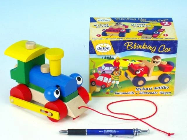 Dětská dřevěná - skládací tahací mašinka ze dřeva na červeném provázku.