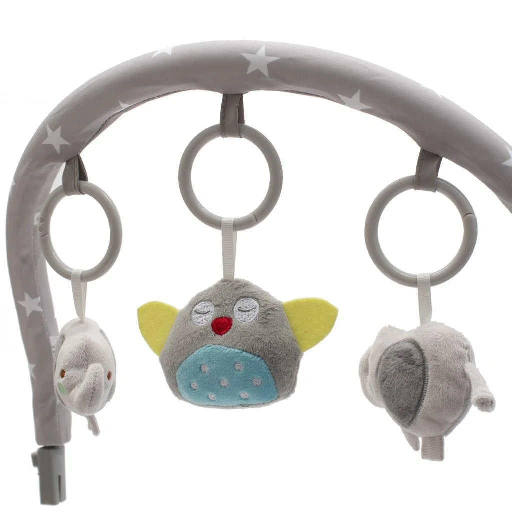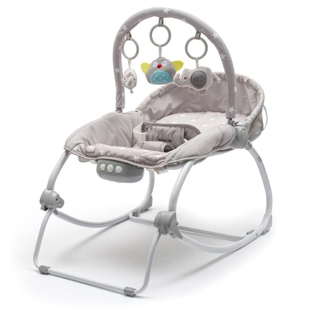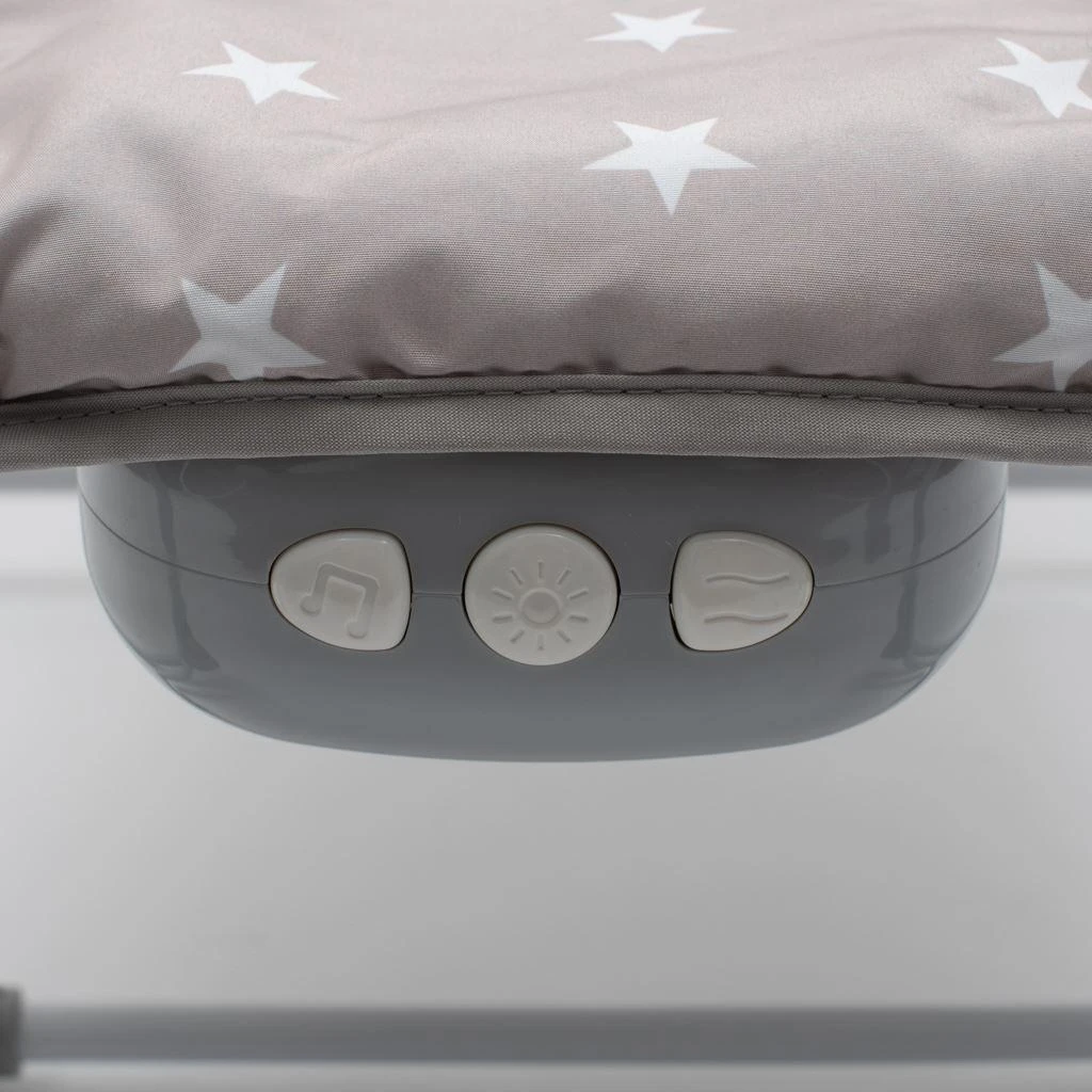 Lze jej aretovat i do pevné polohy vhodné na příklad ke krmení. Je vybaveno odnímatelnou hrazdou se třemi hračkami, nastavitelnou opěrkou zad a vibračním a zvukovým a světelným modulem, který zpříjemní chvíle vašemu dítěti.