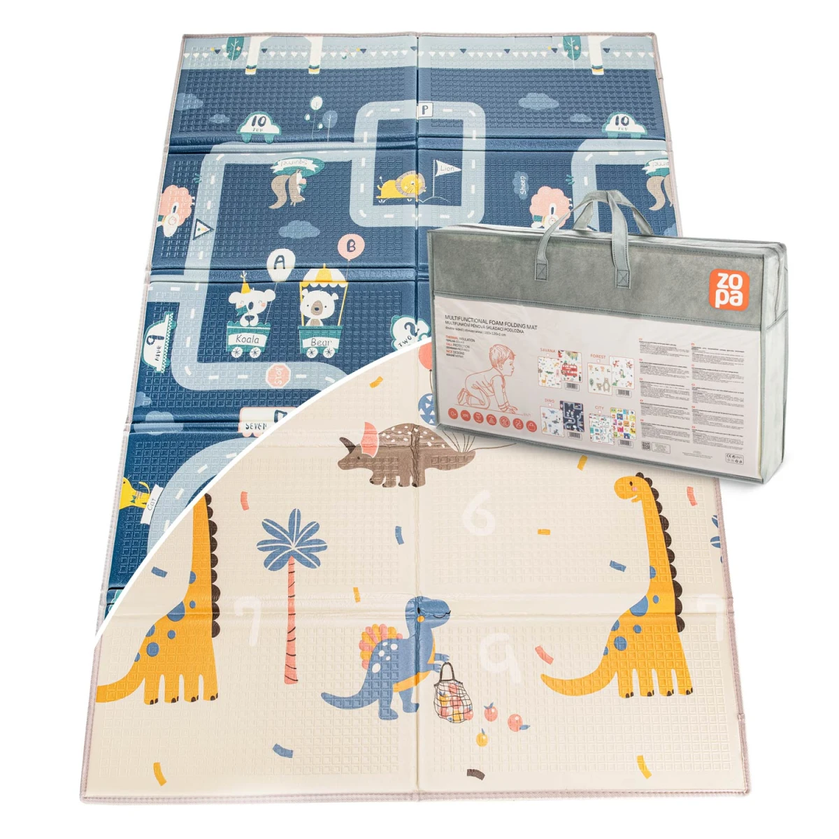 Multifunkční pěnová skládací podložka oboustranná 180 x120 cm Dino