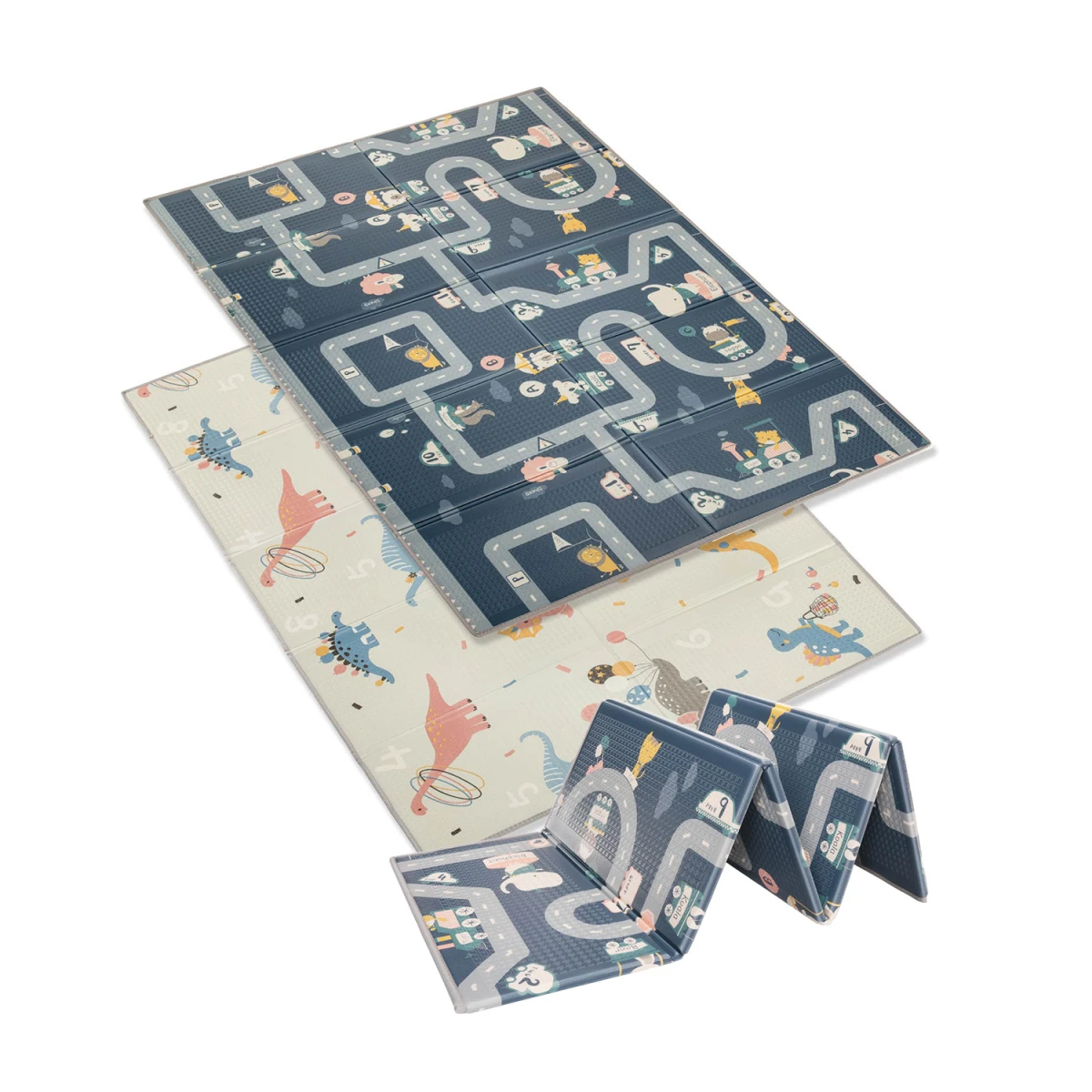 Díky oboustrannému designu nabízí různé motivy, které mohou podpořit dětskou fantazii i rozvoj smyslového vnímání. Povrch je snadno omyvatelný, což oceníte při běžné údržbě i nečekaných nehodách.Skládací konstrukce umožňuje jednoduché složení i přenášení, takže podložku můžete snadno uložit nebo vzít s sebou na cesty.
