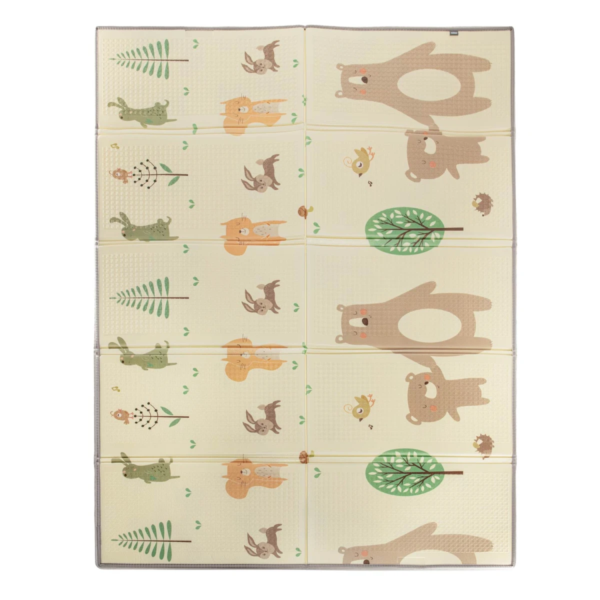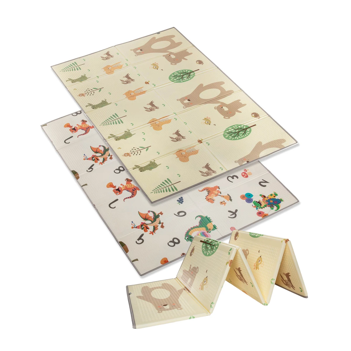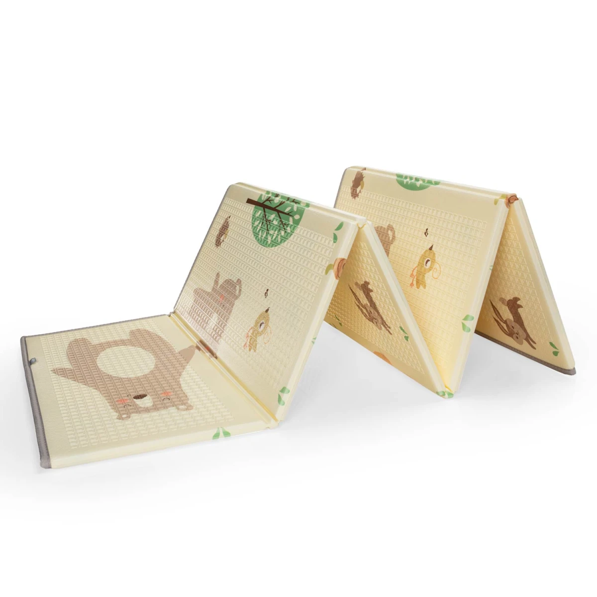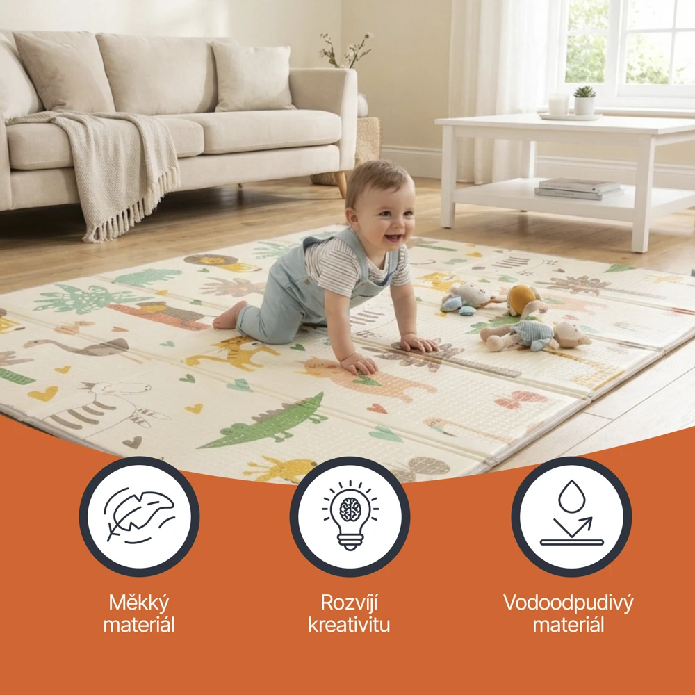 Skládací provedení umožňuje jednoduché složení, přenášení i uskladnění, takže je podložka praktická i pro menší prostory. Vhodná je do dětského pokoje, obývacího prostoru i na cesty, kde vytvoří bezpečné a útulné místo pro dítě.