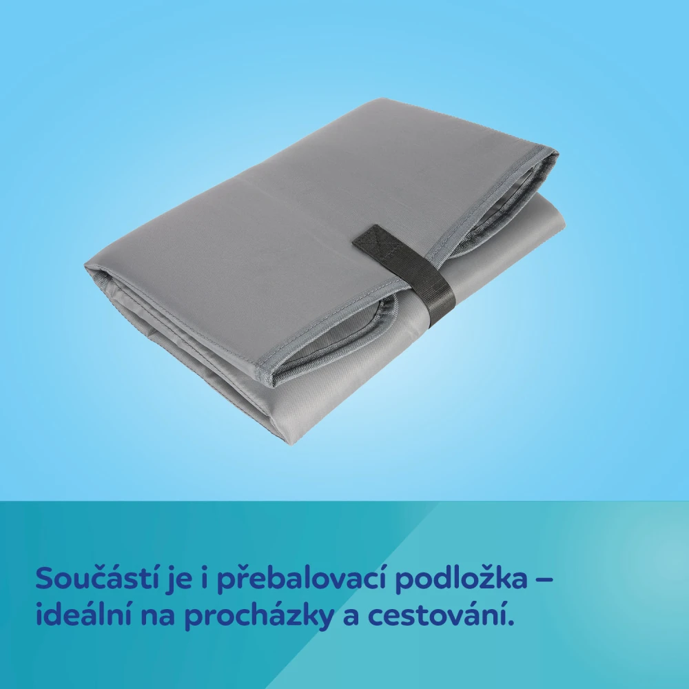 - Součástí batohu je přebalovací podložka – ideální na procházky a cestování.