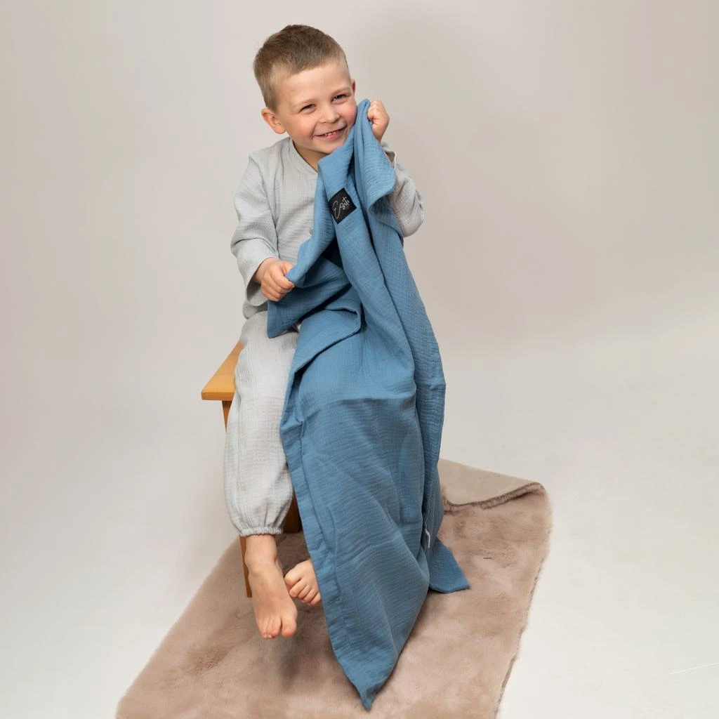 - Deky pro miminka do kočárku, mušelínová, modrá