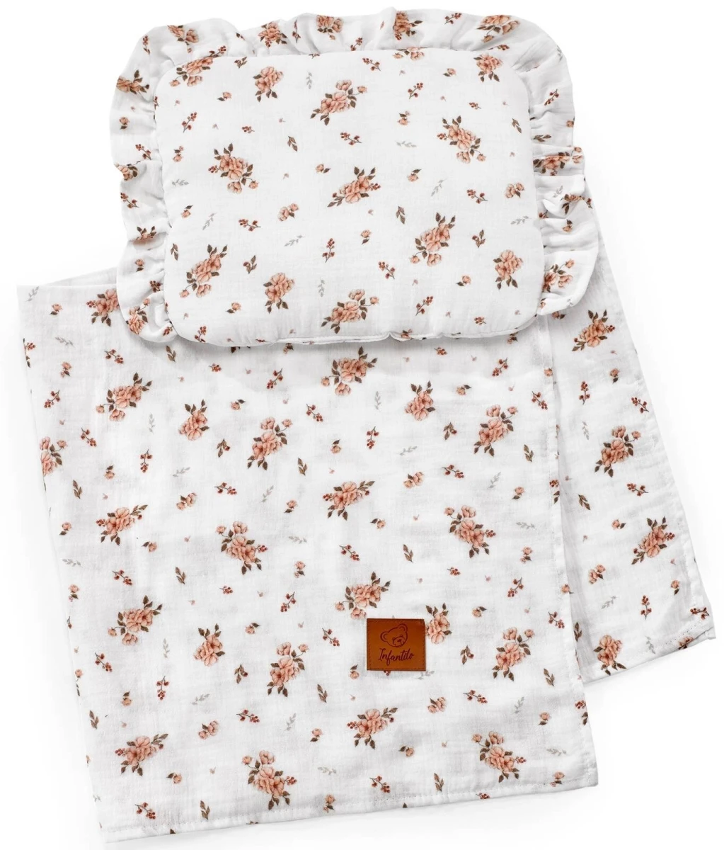 Mušelínová letní sada polštář s volánky Malé květiny Infantilo
