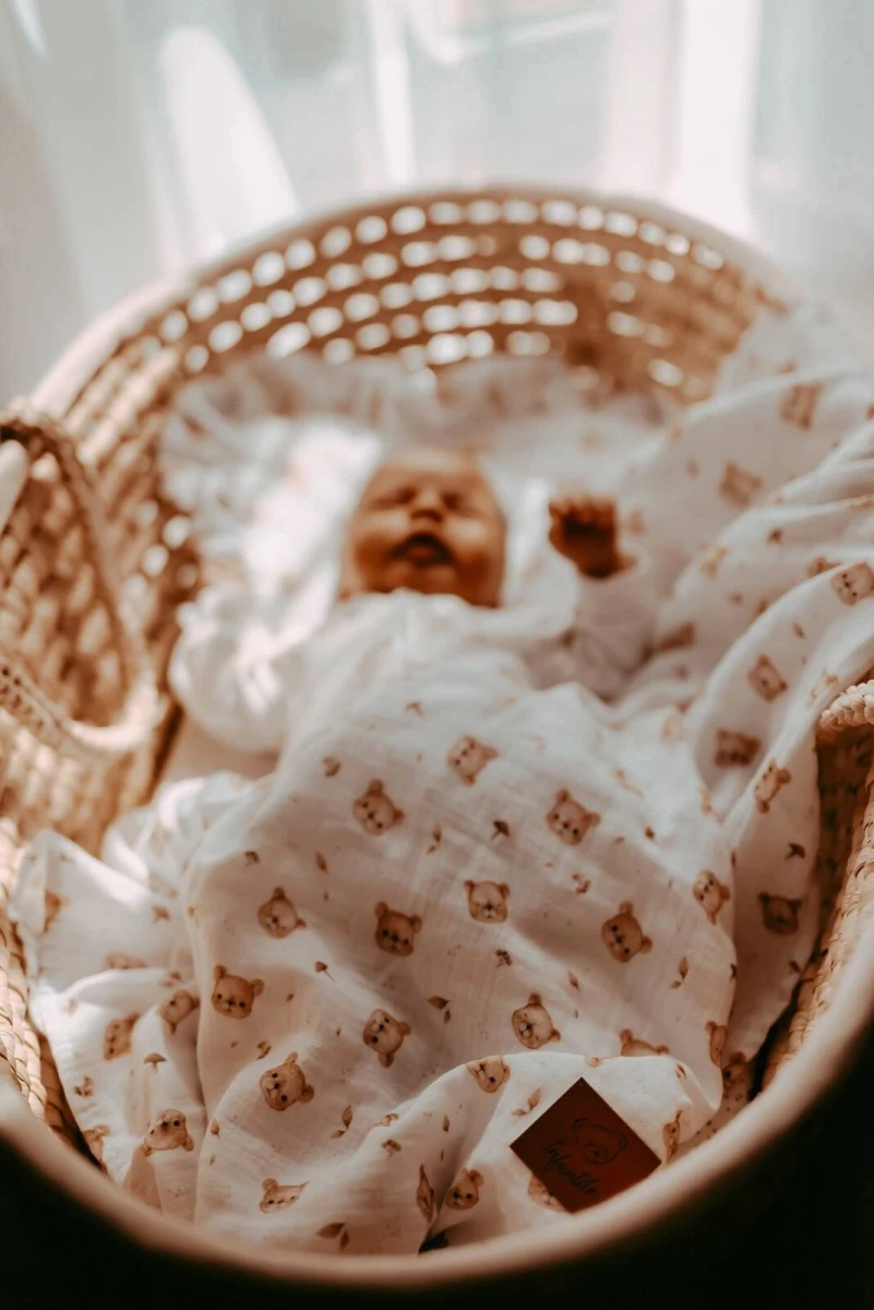 Set je ušitý z bavlněného mušelínu typu double gaze, který je mimořádně měkký, lehký a prodyšný. Skvěle se hodí pro citlivou pokožku miminek i malých dětí. Použitá látka pochází z Polska a splňuje bezpečnostní certifikace, takže si můžete být jistí, že vybíráte výrobek, který je bezpečný a šetrný k dětské pokožce.