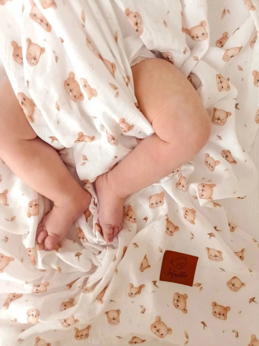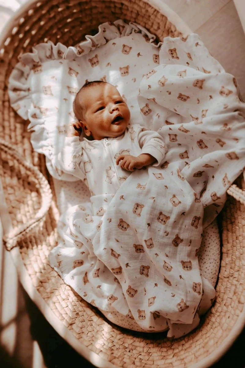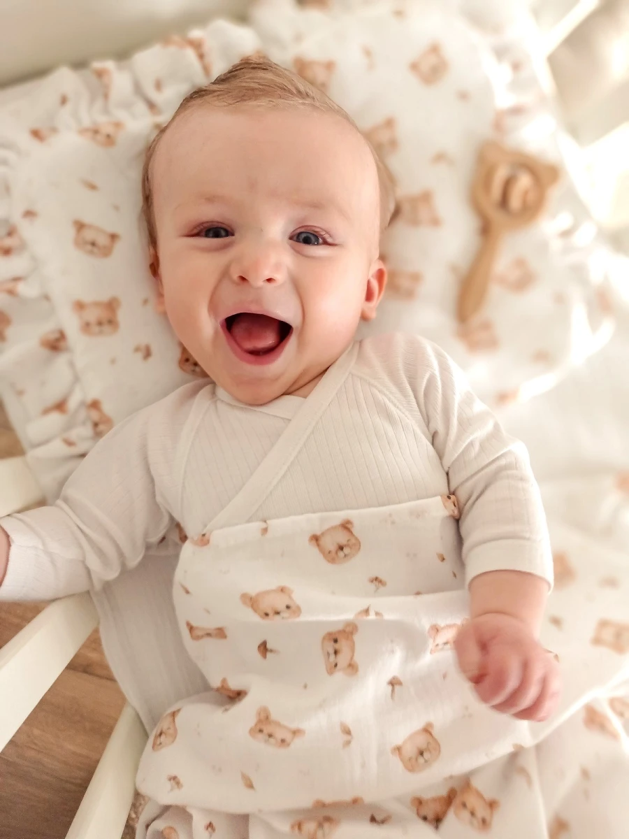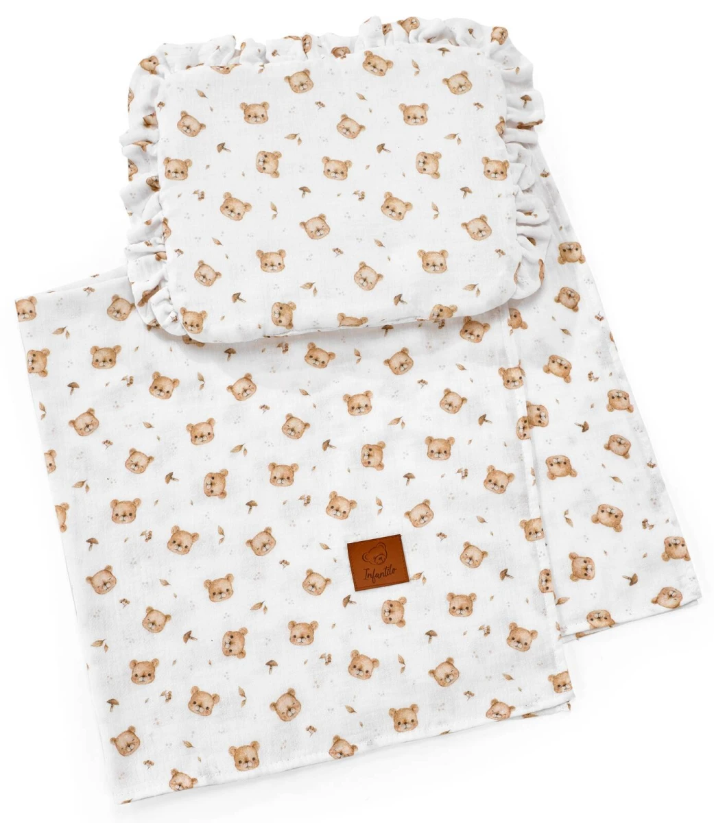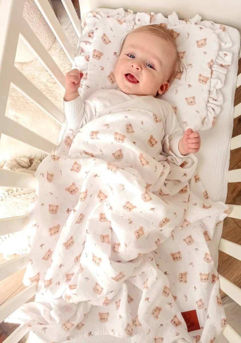 Mušelínová letní sada polštář s volánky Medvídek Infantilo